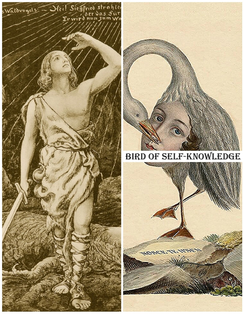 When Siegfried encounters the woodbird, Peter considers that the voice of nature becomes the main catalyst for change in the Ring. Having tasted the blood of Fafner the dragon, Siegfried can now understand birdsong. The woodbird warns Siegfried of the treacherous Mime and tells him of a wonderful wife for him, Brünnhilde, sleeping on a rock surrounded by fire. Through its sweet and caring song to Siegfried, the woodbird manifests itself for Wagner as “Sieglinde’s maternal soul’. In myth, birds can be regarded as a means for the getting of wisdom and Peter referred here to the allegorical figure of the “bird of self-knowledge”.