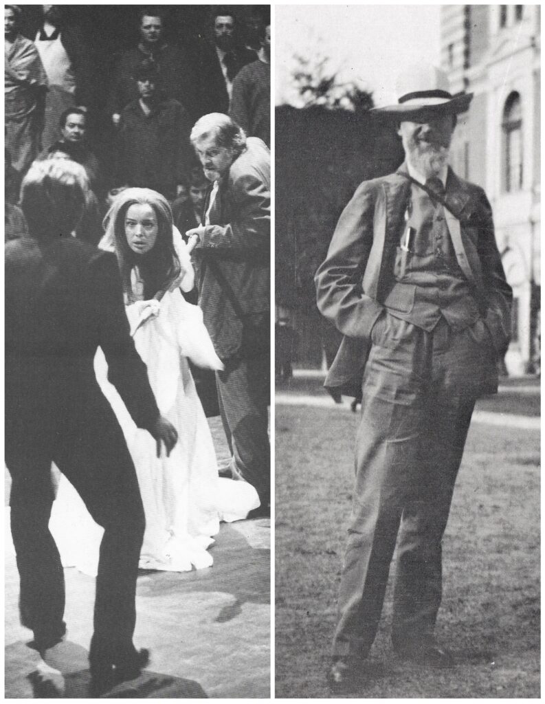 Left: A scene from the 1976 Bayreuth Centenary Ring directed by Patrice Chéreau, staged as an allegory on the evils of capitalism and industrialization. Right: Bernard Shaw, writer and Fabian Socialist, who attended Bayreuth in 1889, 1894, 1896 and 1908 and wrote The Perfect Wagnerite (published in 1898 with later editions in 1901, 1913 and 1922).